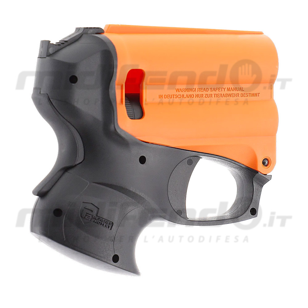 Il design arancione-nero distintivo non è solo una scelta estetica, ma una caratteristica di sicurezza internazionalmente riconosciuta che identifica chiaramente l'arma come dispositivo di difesa non letale, contribuendo a un effetto de-escalation nelle situazioni di confronto. La pistola viene fornita completa di cartuccia spray al peperoncino da 11ml, batteria CR123 per la torcia, ed è completamente compatibile con le ricariche del sistema P2P, incluse le cartucce di allenamento ad acqua per la pratica sicura. Conforme alle normative italiane vigenti, la PGS II rappresenta una soluzione professionale per la protezione personale, ideale per chi cerca un dispositivo affidabile, efficace e legalmente utilizzabile.