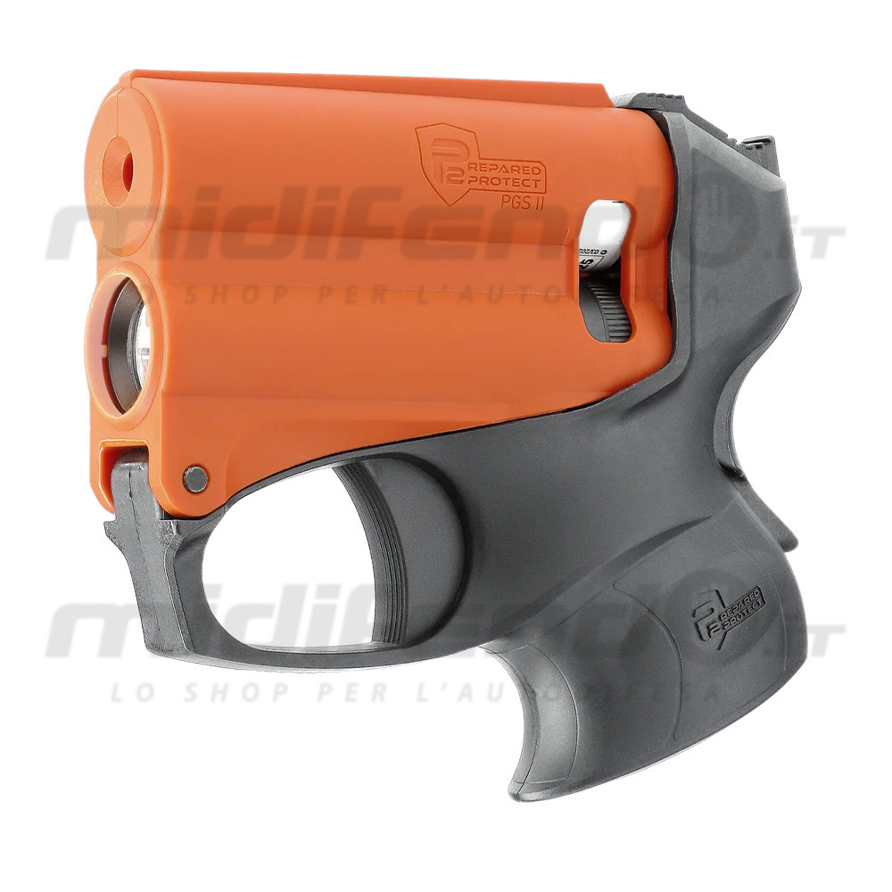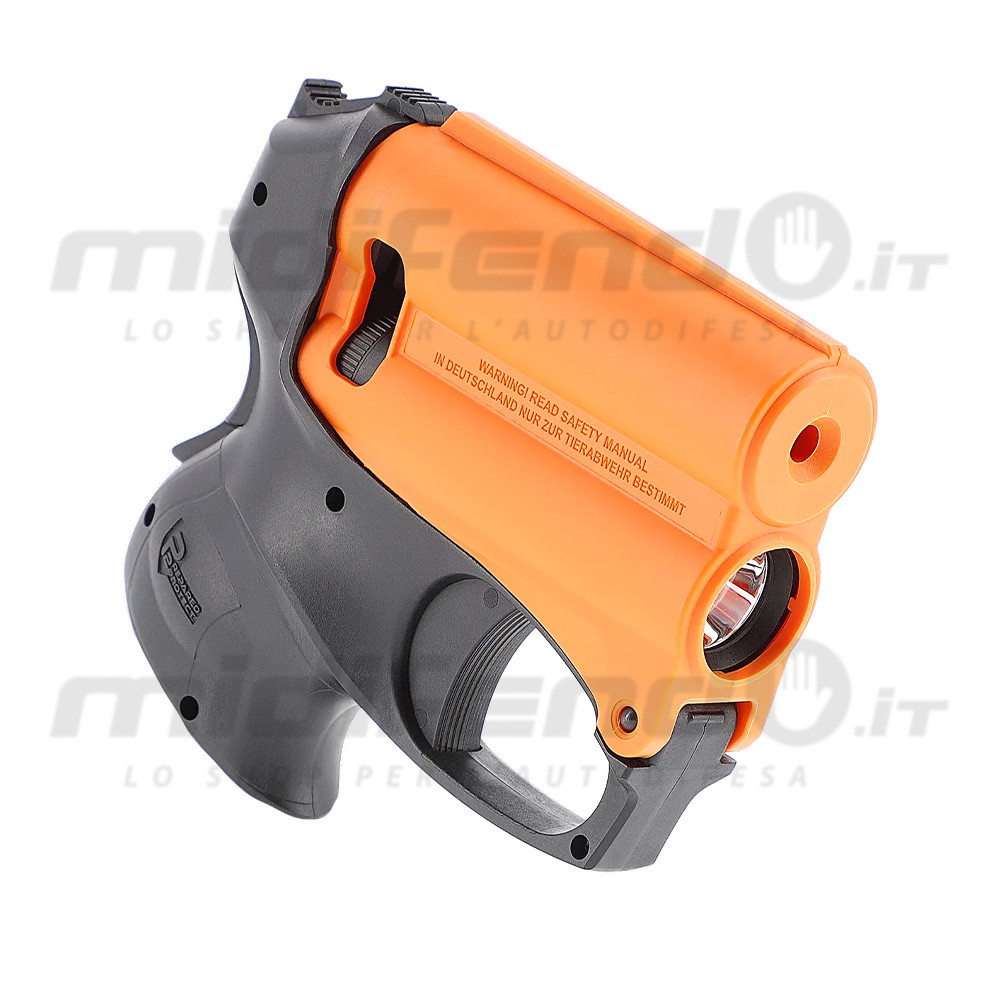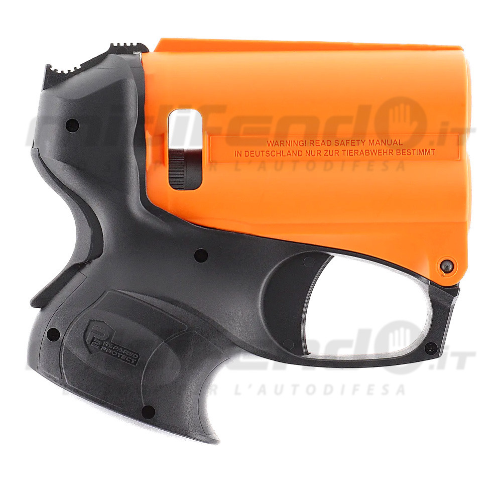 Il design arancione-nero distintivo non è solo una scelta estetica, ma una caratteristica di sicurezza internazionalmente riconosciuta che identifica chiaramente l'arma come dispositivo di difesa non letale, contribuendo a un effetto de-escalation nelle situazioni di confronto. La pistola viene fornita completa di cartuccia spray al peperoncino da 11ml, batteria CR123 per la torcia, ed è completamente compatibile con le ricariche del sistema P2P, incluse le cartucce di allenamento ad acqua per la pratica sicura. Conforme alle normative italiane vigenti, la PGS II rappresenta una soluzione professionale per la protezione personale, ideale per chi cerca un dispositivo affidabile, efficace e legalmente utilizzabile.